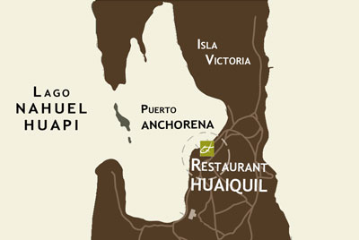 Restaurant Huaiquil está ubicado en la Isla Victoria del Lago Nahuel Huapi, a sólo 50 metros del muelle donde arriban las embarcaciones